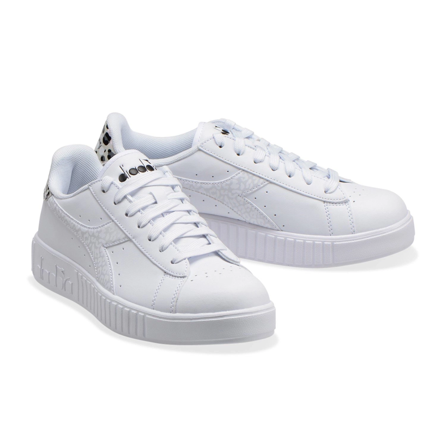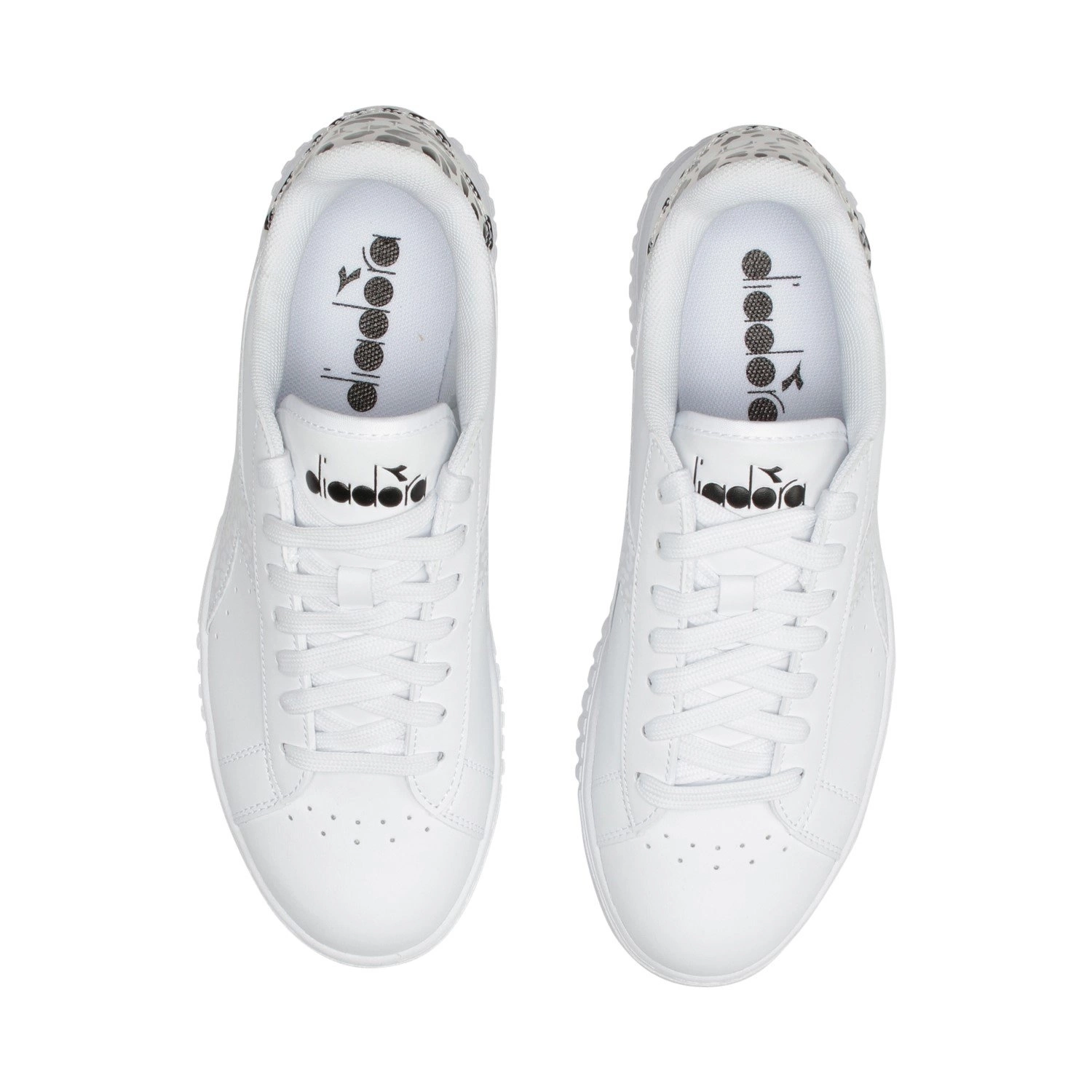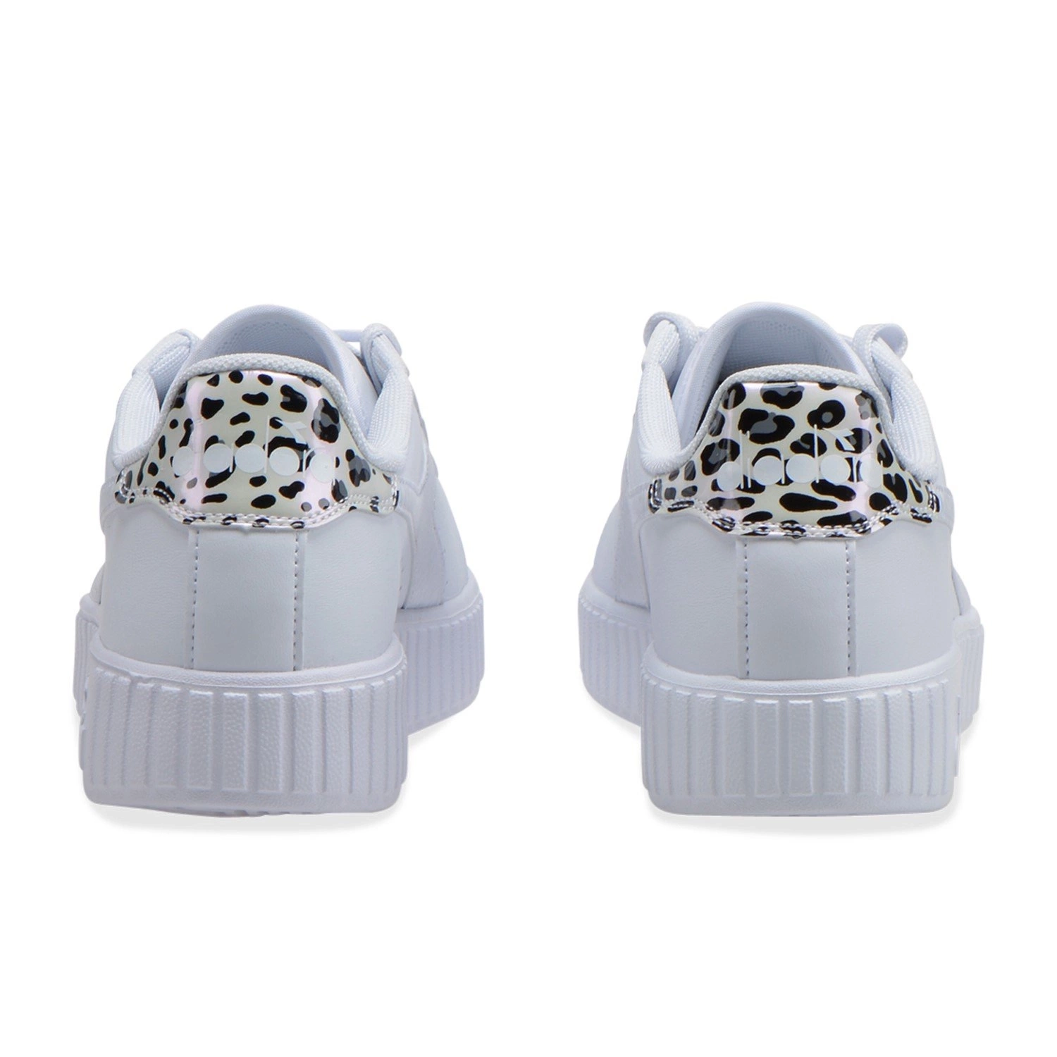 Sznurowane sneakersy damskie z wyróżniającym logo Diadora w metalicznym kolorze.