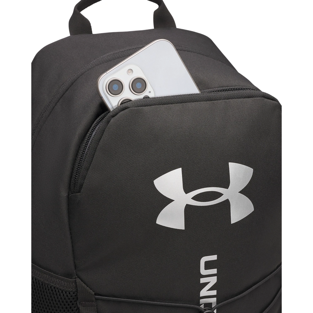 - Wodoodporna technologia UA Storm sprawia, że przechowywane niezbędne rzeczy zachowują suchość
