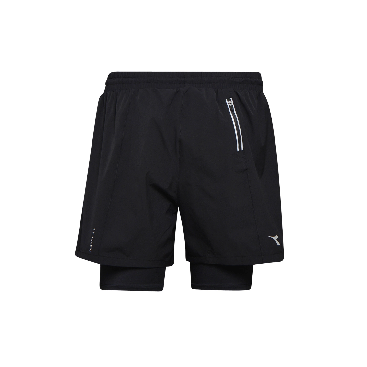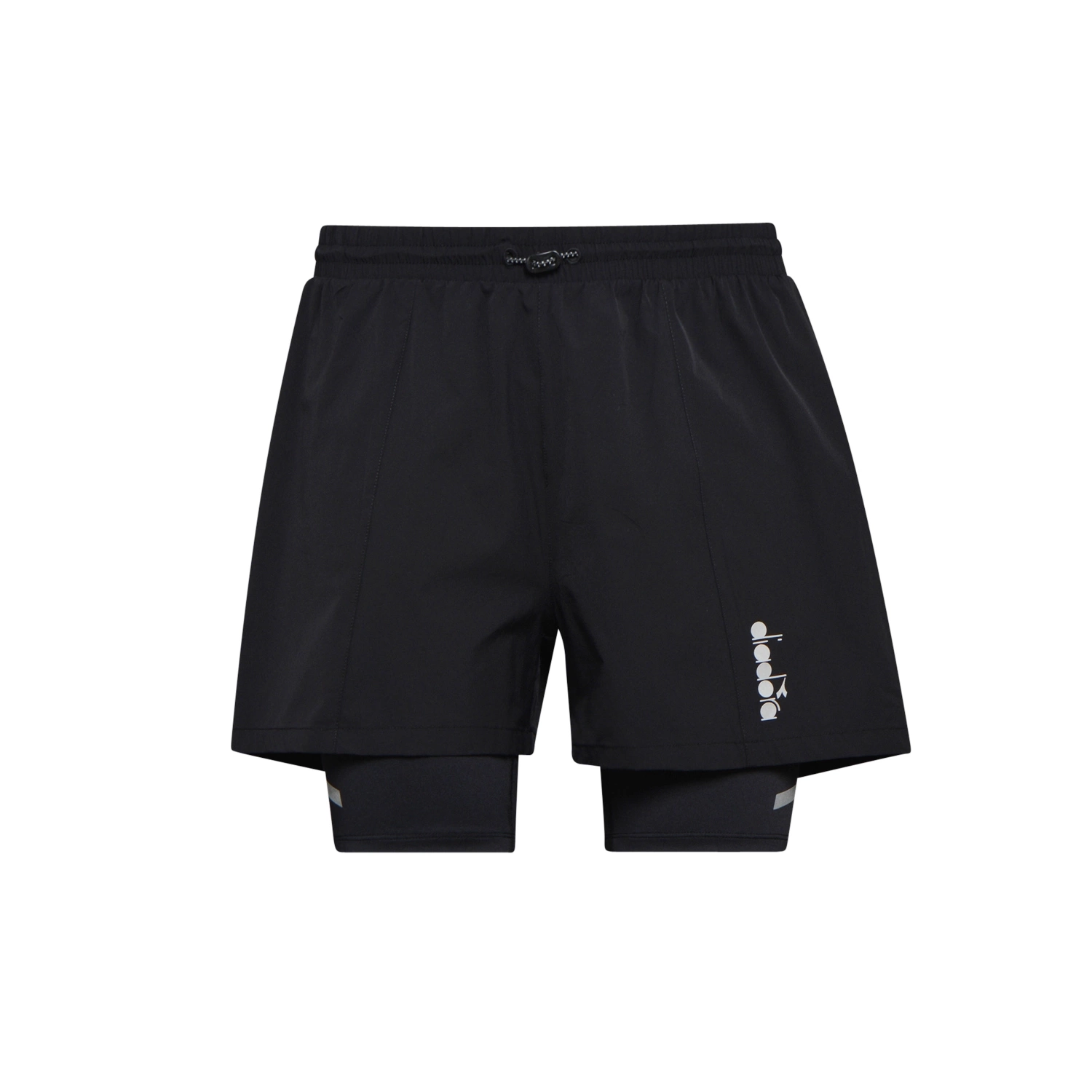 Męskie dwuwarstwowe spodenki DIADORA DOUBLE LAYER BERMUDA do biegania z zewnętrzną częścią z ultralekkiej poliestrowej mikrofibry i wewnętrzną parą spodenek rowerowych z miękkiego, rozciągliwego poliestru. Wzory nadruków i odblaskowe detale zapewniają doskonałą widoczność nawet w złych warunkach oświetleniowych. Tylna kieszeń wykonana z wodoodpornej tkaniny wewnętrznej ochroni Twoje przedmioty osobiste.